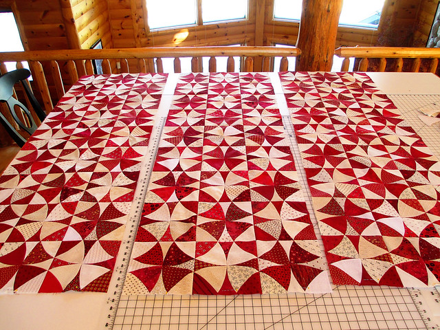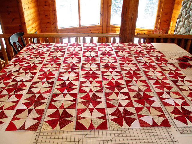 I have been thinking of you and wondered how the top was coming. It is beautiful. I bought the die because of you. I made a sample block but ended up being smaller than the 8 1/2 inches even though the block looked great. I need to make another test block with narrower seams. Figured I will use the sample blocks as pot holders. Thank you for sharing your journey. I look forward to seeing it finished. 🙂