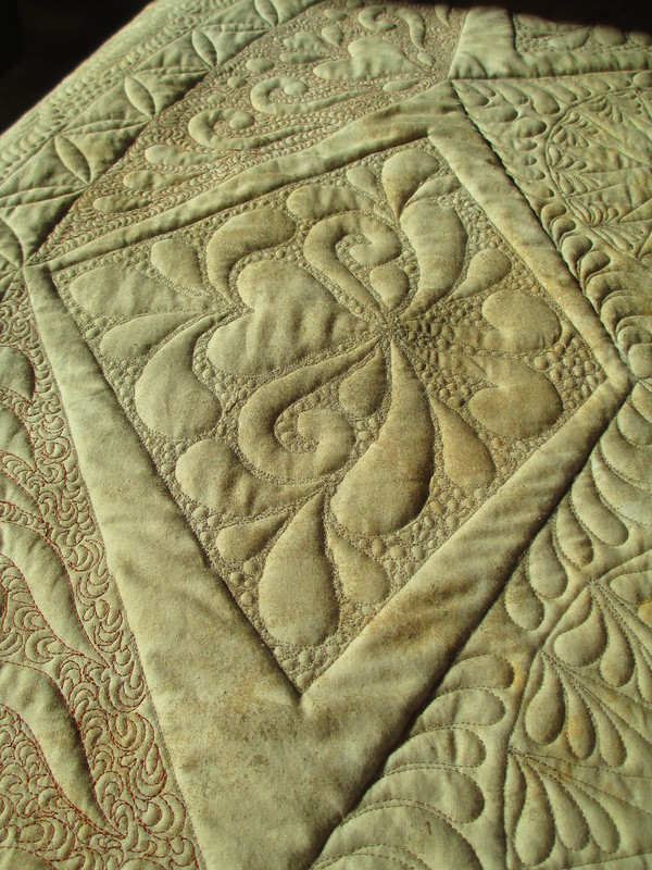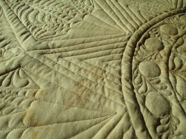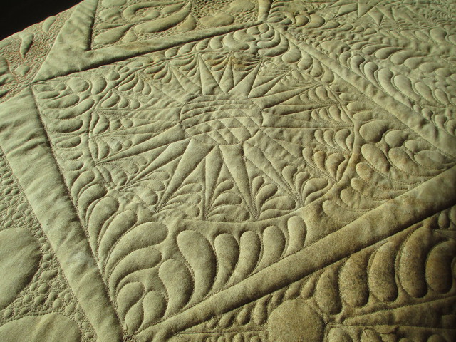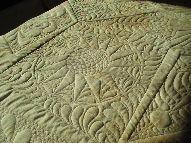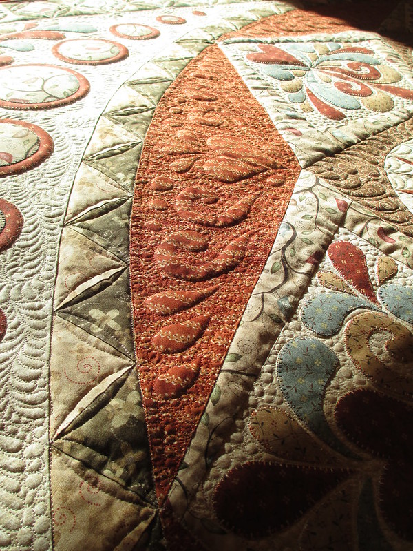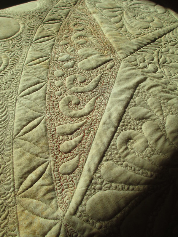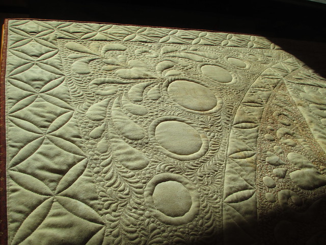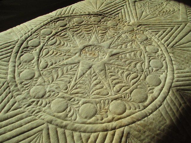 Next came a ring of triangles quilted in the “continuous curve” technique”: