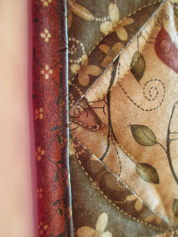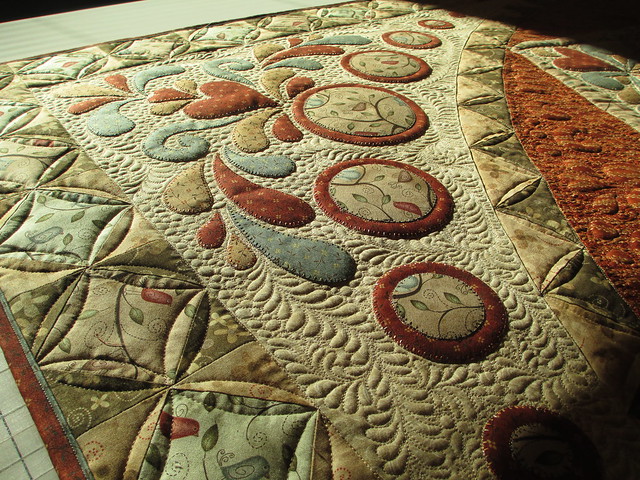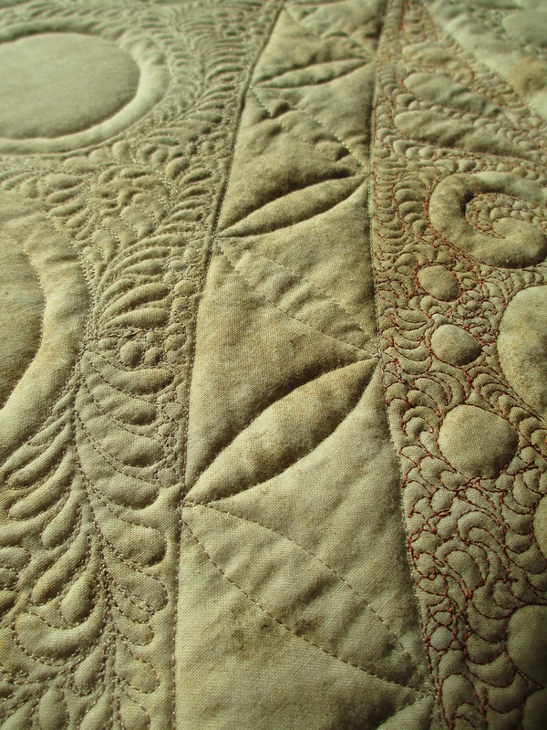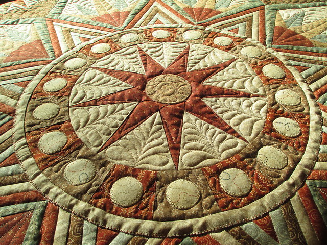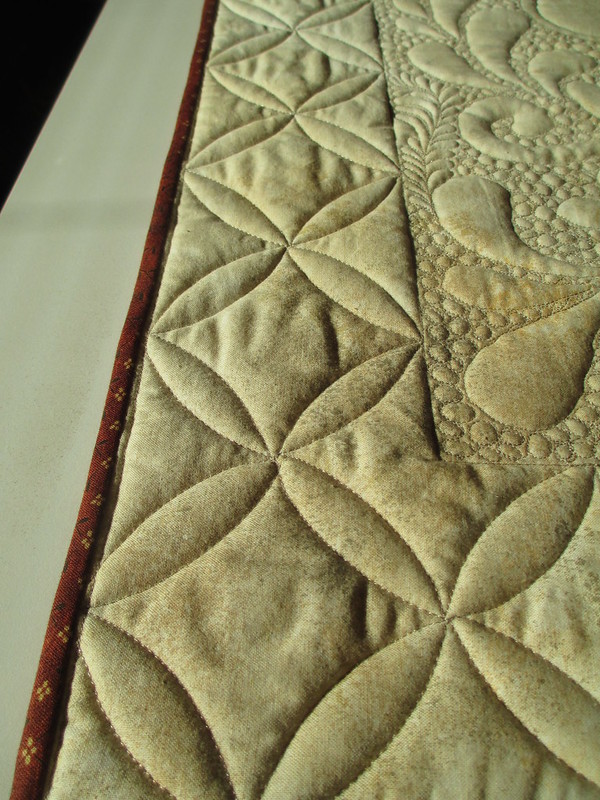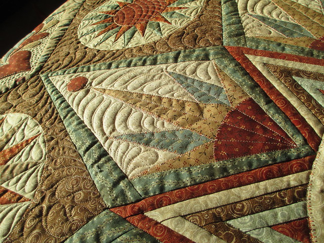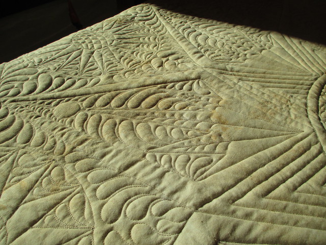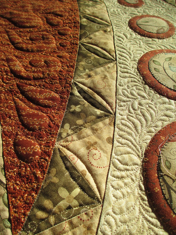 Next came a ring of triangles quilted in the “continuous curve” technique”: