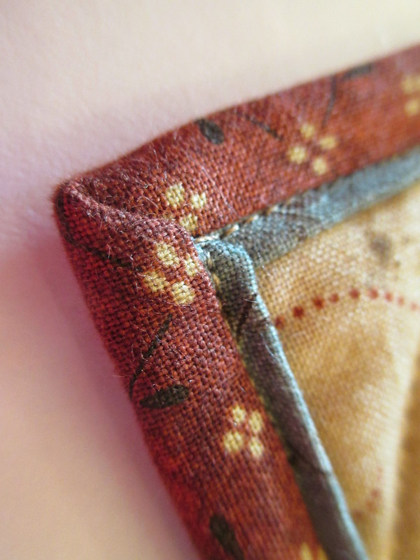 Then, more folk art applique to fill out the corners. I used “pebbles” and tiny feathers for the background fill here: