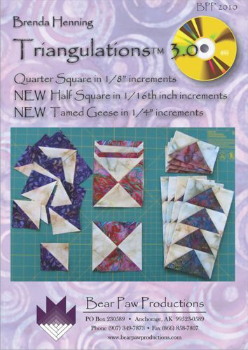 Eventually, 10 participants exchanged 12 half-square triangles (hsts) once a month for six months resulting in a collection of 720 hsts for each of us. We decided that paper piecing was the best way to insure consistently constructed hsts. We used the “Triangulations” software by Brenda Henning to print out the paper piecing foundations.