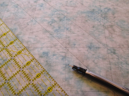 Draw lines a 1/4 inch from each side of the diagonal line. These will be the diagonal sewing lines: