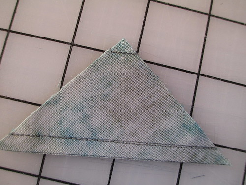 Press the seam of each HST toward the dark. Pressing from the right side makes it easy to avoid pleats at the seam line: