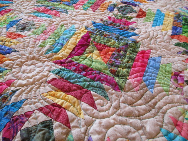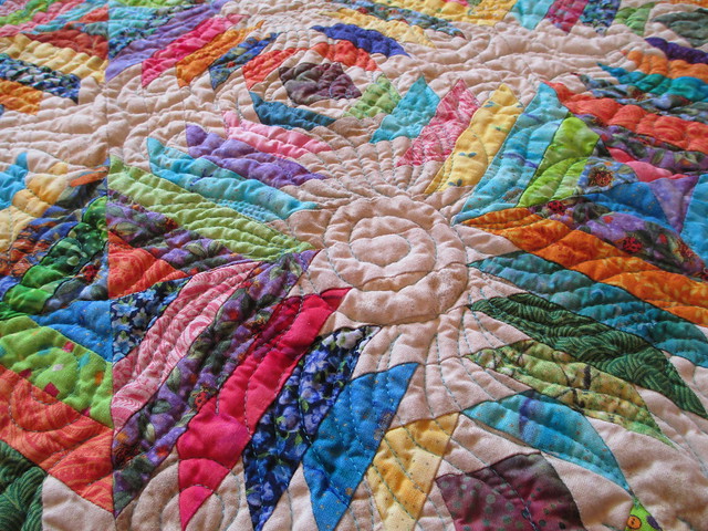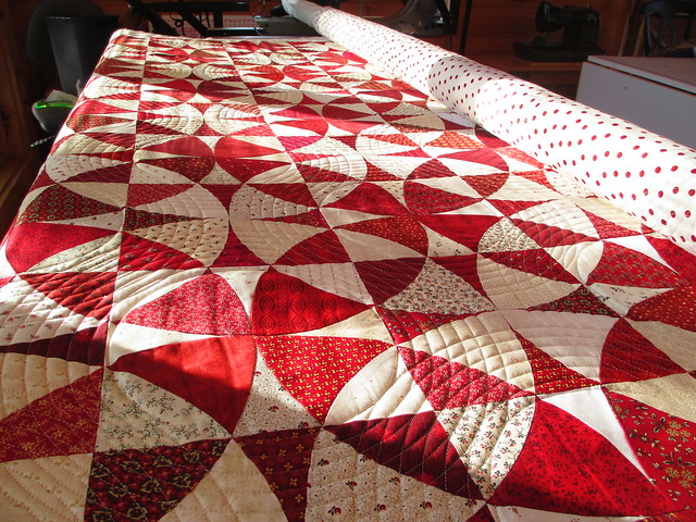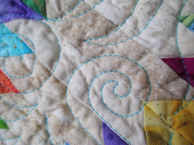 As your sewing progresses to the corners, lots of fabric will be in the throat of the machine. Loosely roll it up to keep it out of the way:
